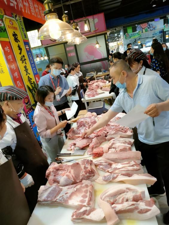 剔骨刀百轉(zhuǎn)千回,斷骨刀鏗鏘有力,轉(zhuǎn)眼間半片豬就被精準(zhǔn)地分割成前腿、后腿、五花肉、排骨……等21份單品,場(chǎng)面尤為激烈。這讓賽場(chǎng)外的顧客們也大飽眼福,連連感嘆,竟意外成了為選手們加油的拉拉隊(duì)。而且還在不停詢問(wèn)購(gòu)買信息,看來(lái)他們是做好了搶購(gòu)分割肉的準(zhǔn)備,果然,切割后的成品豬肉銷售異常火爆,被圍觀許久的顧客搶購(gòu)一空。
