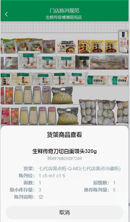 生鮮傳奇建立了許多標(biāo)準(zhǔn),第一個(gè)就是我們在商品的棚割表,大家可以看到這張圖,這是我們把所有的商品都數(shù)字化,在我們的系統(tǒng)里面建立了商品的陳列圖,門店只需要按照陳列圖去陳列就可以了。